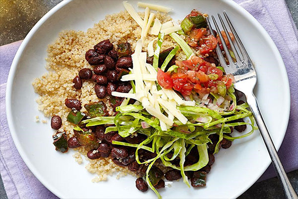 سالاد لوبیا سیاه و کینوآ را گیاهخواران می توانند در رژیم غذایی قرار دهند و به دلیل پروتئینی که دارد می تواند به ماهیچه سازی کمک کند.
